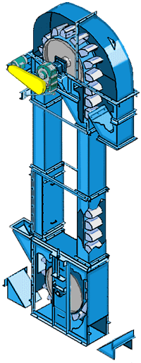 斗式提升機(jī)由提升機(jī)上、下鏈輪,皮帶,挖斗,絲桿,進(jìn)出料口,箱體,電機(jī)減速機(jī)等組成,具有輸送量大,提升高度高,運(yùn)行平穩(wěn)可靠,壽命長顯著優(yōu)點(diǎn),本提升機(jī)適于輸送粉狀,粒狀及小塊狀的無磨琢性及磨琢性小的物料,如:煤、水泥、石塊、砂、粘土、礦石等。